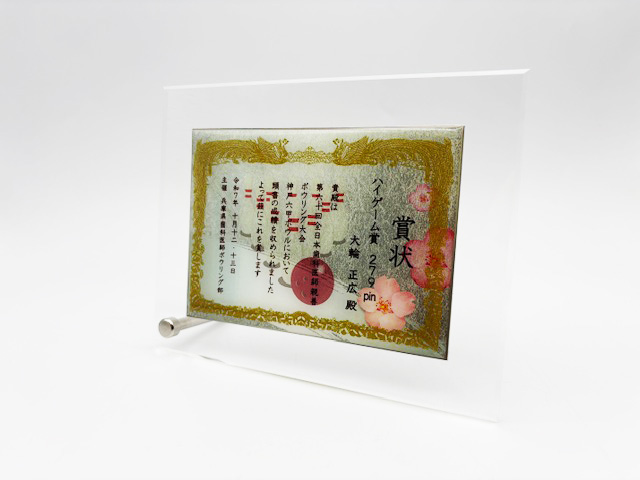 ハイスコア 279pt の快挙を讃える特別なオリジナル表彰楯