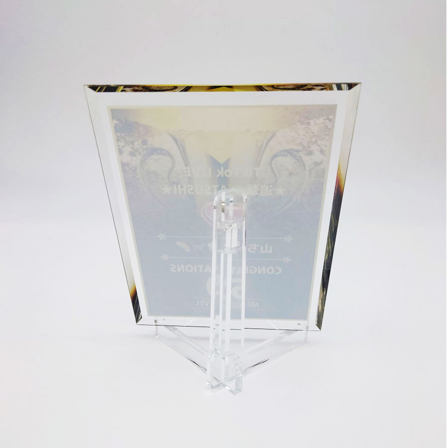再生アクリル素材を使用した環境配慮型の表彰楯。